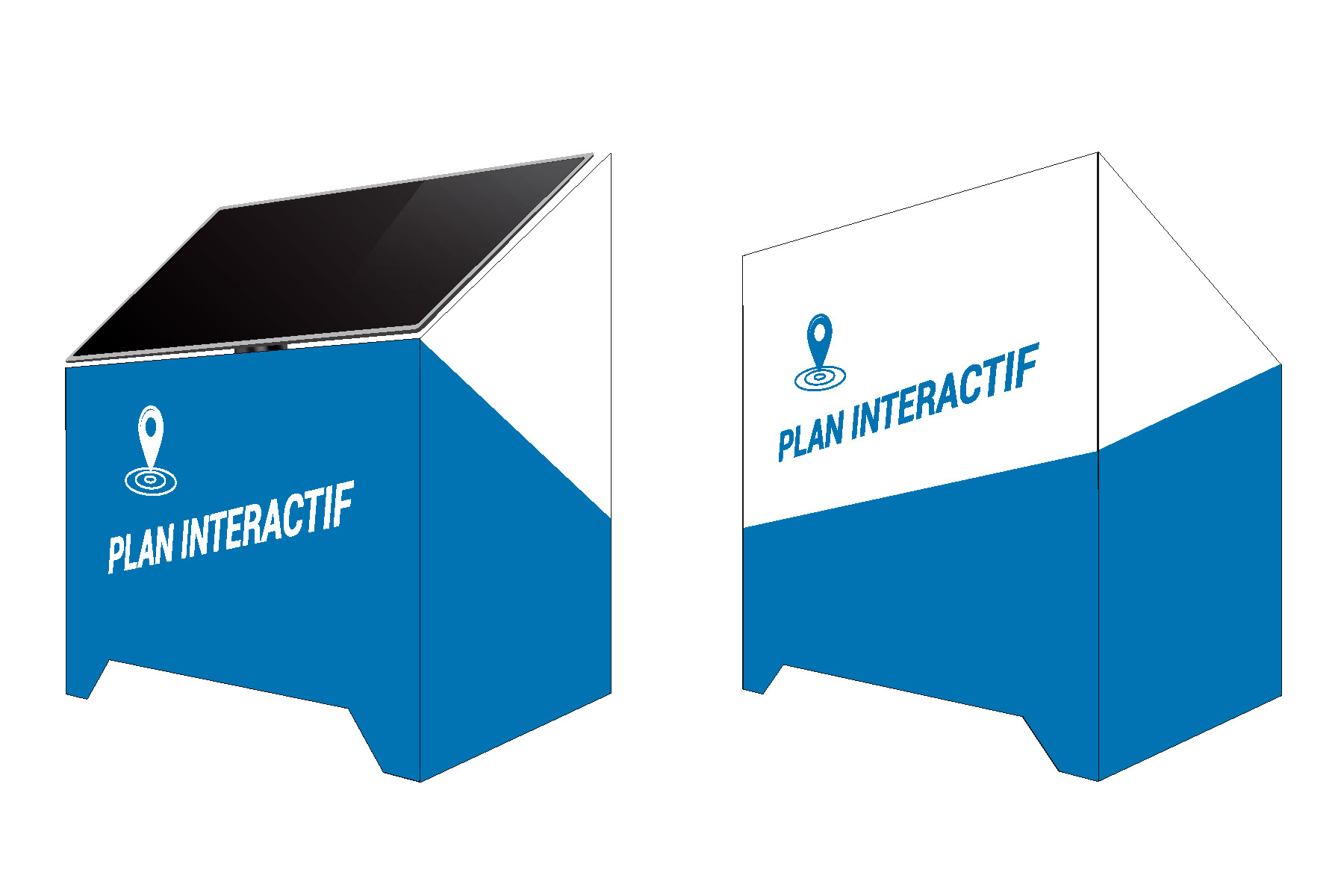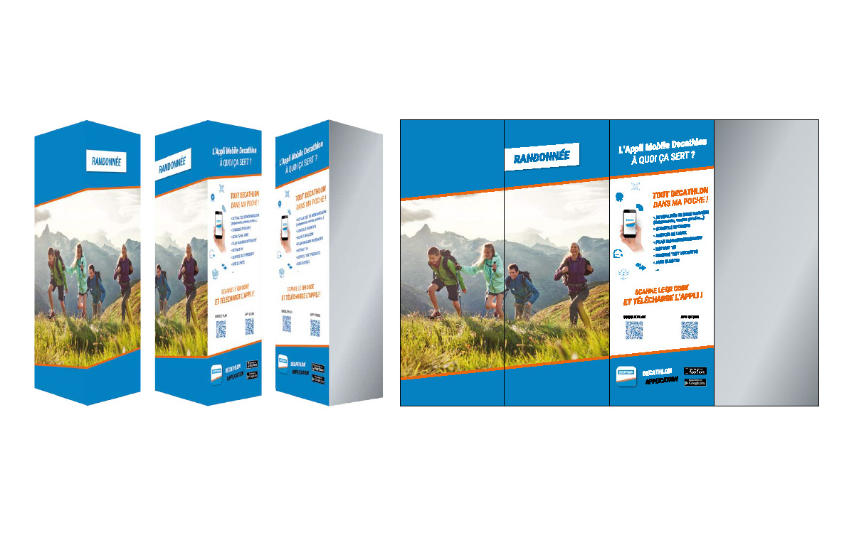 Signalétique du sas d'entrée et coffrage de poteaux, habillage adhésifs et borne interactive pour Décathlon Saint-Herblain