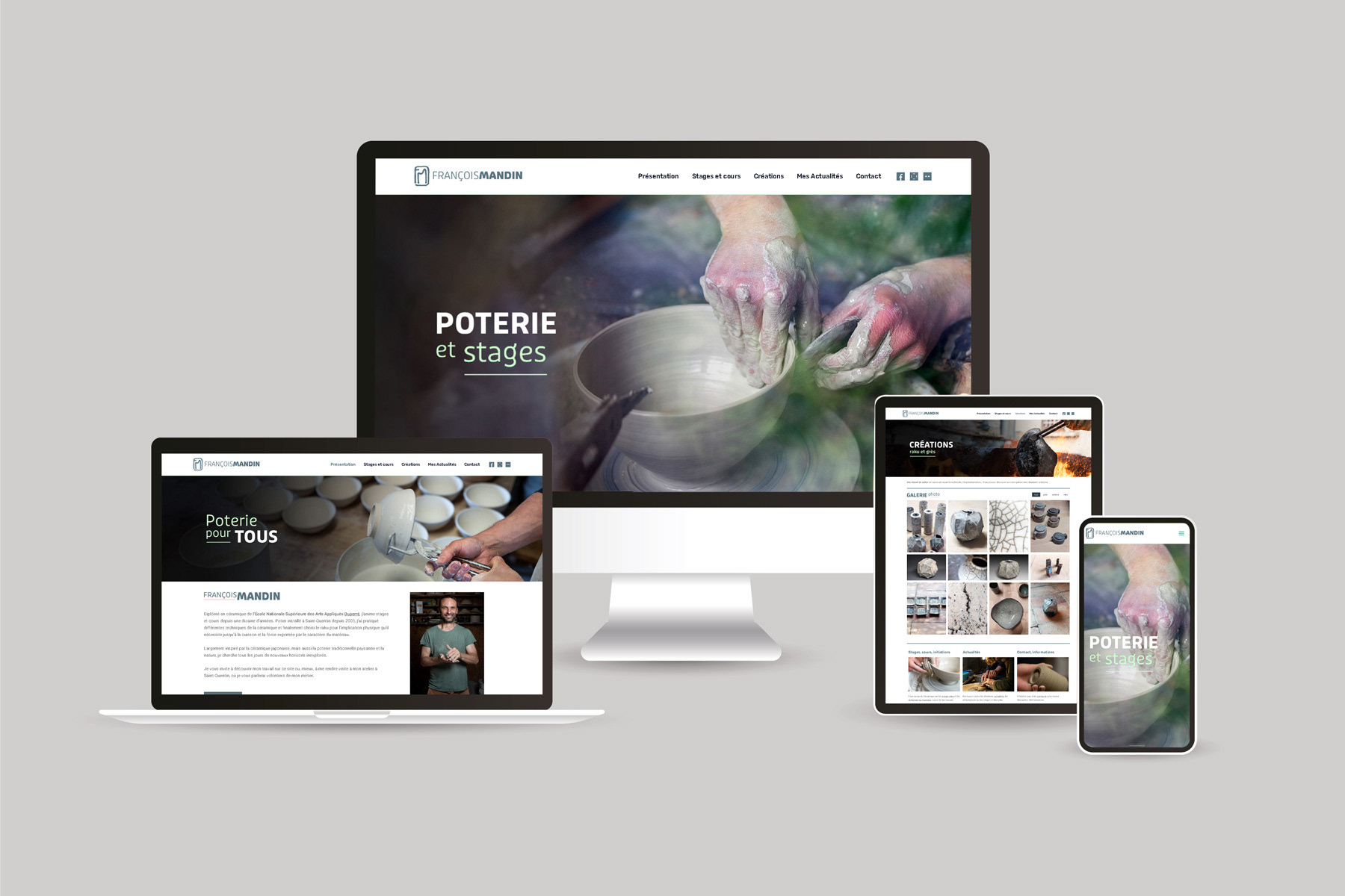 Design du nouveau site internet de François Mandin, céramiste et animateur de stages de poterie :