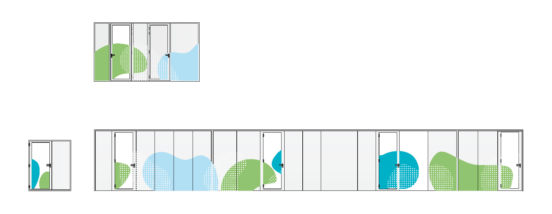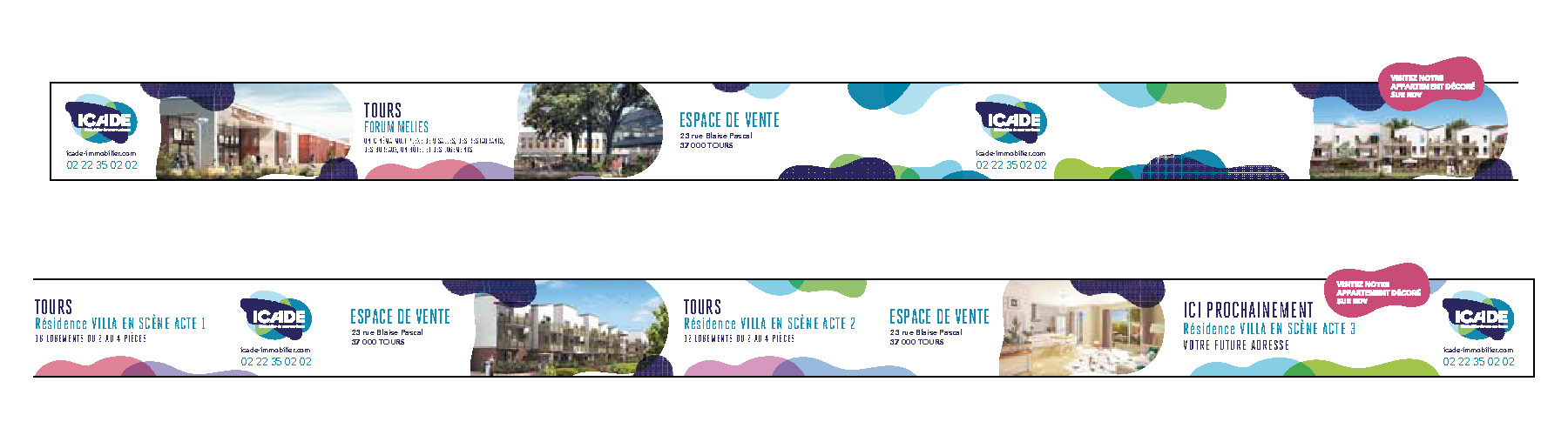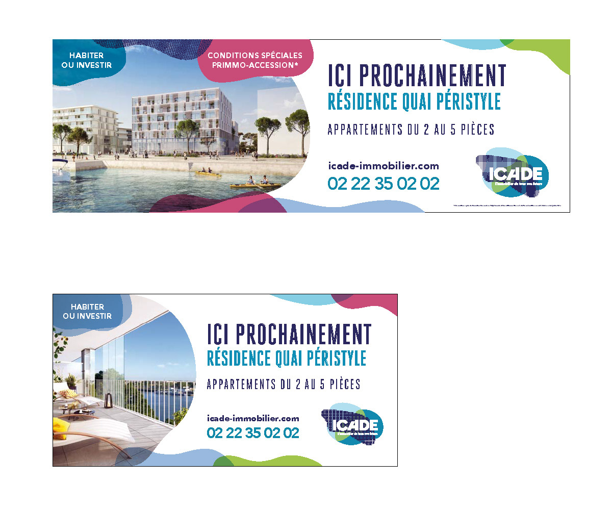Créations de visuels pour communication sur site, habillage adhésif des lieux de vente (Rennes, Vannes, Tours…).