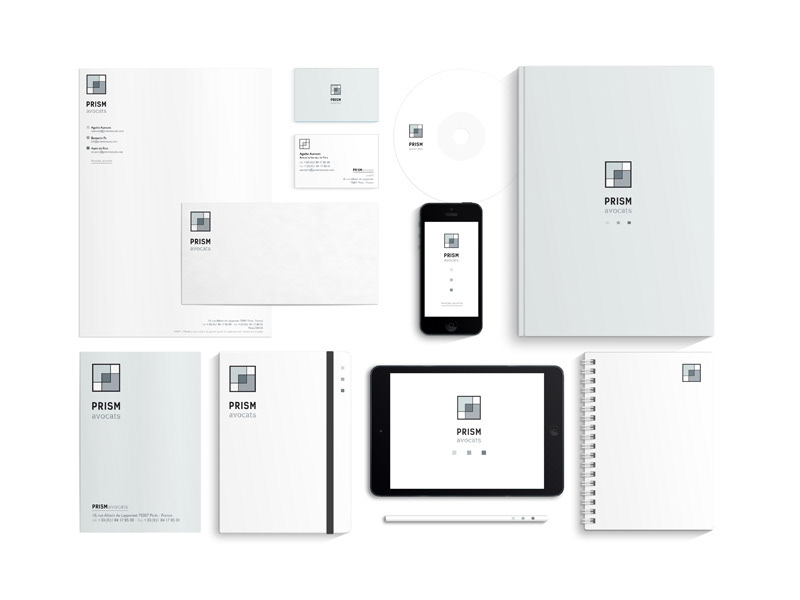 Identité visuelle et naming de Prism Avocats, cabinet d'avocats en droits des affaires à Paris.